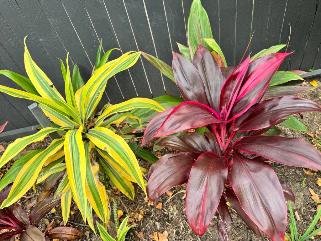 I had since attended one of Denis Hundscheidt’s garden workshops in 2023, and one thing I noticed was his extensive use of dracaenas throughout his garden. We have had a few dracenas growing, such as the original D. warneckii, D. reflexa or ‘Song of India’ and ‘Song of Jamaica’ (now classified into their own genus Pleomele). But this workshop made me realise I had untapped this wonderful resource of very hardy, tropical-looking plants that are ideal for Brisbane’s climate, have few issues with pests and diseases and will often survive on just rainfall alone. They also complement the cordylines and other tropical plants in our garden, providing contrast of foliage shape and colour.